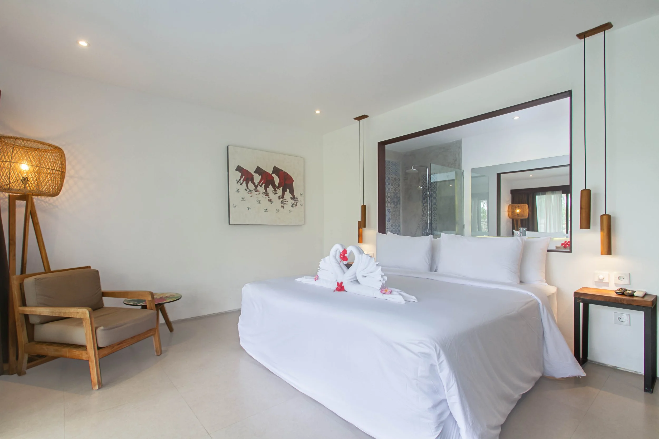 King size bed and separate toilets and very bright bathroom A unique concept that has made the happiness and reputation of our resort* it is possible to join two rooms to create a family suite.