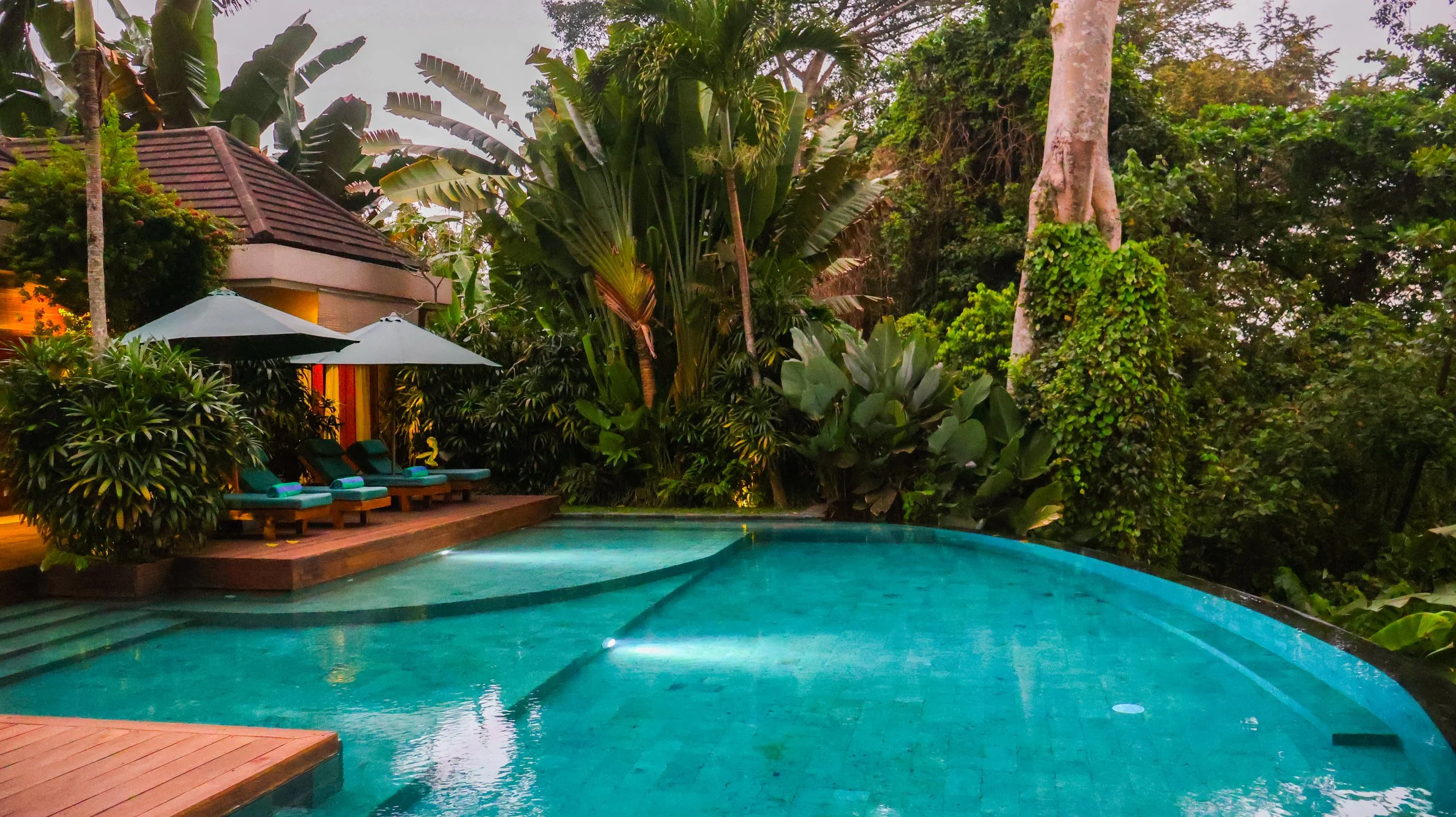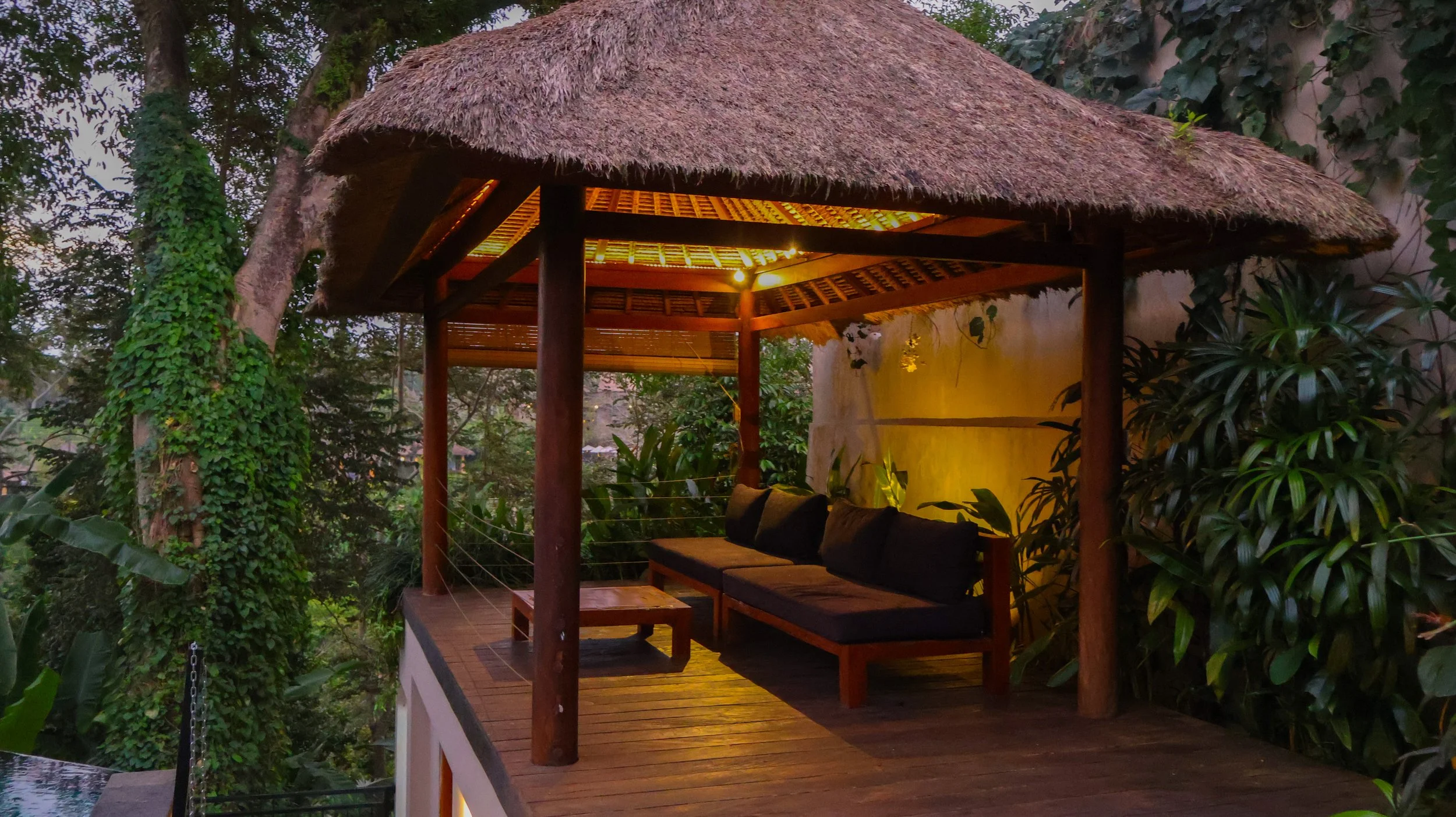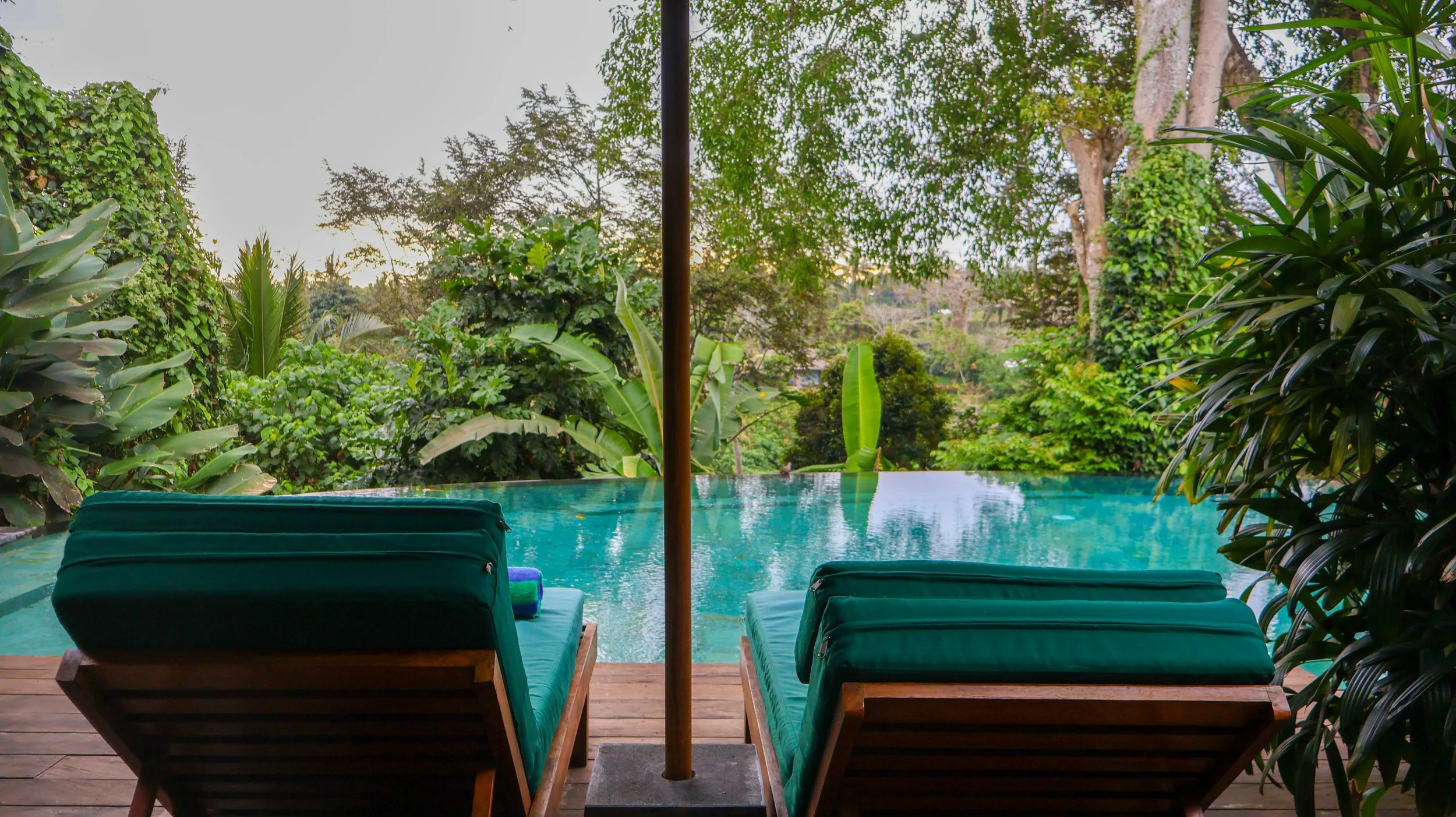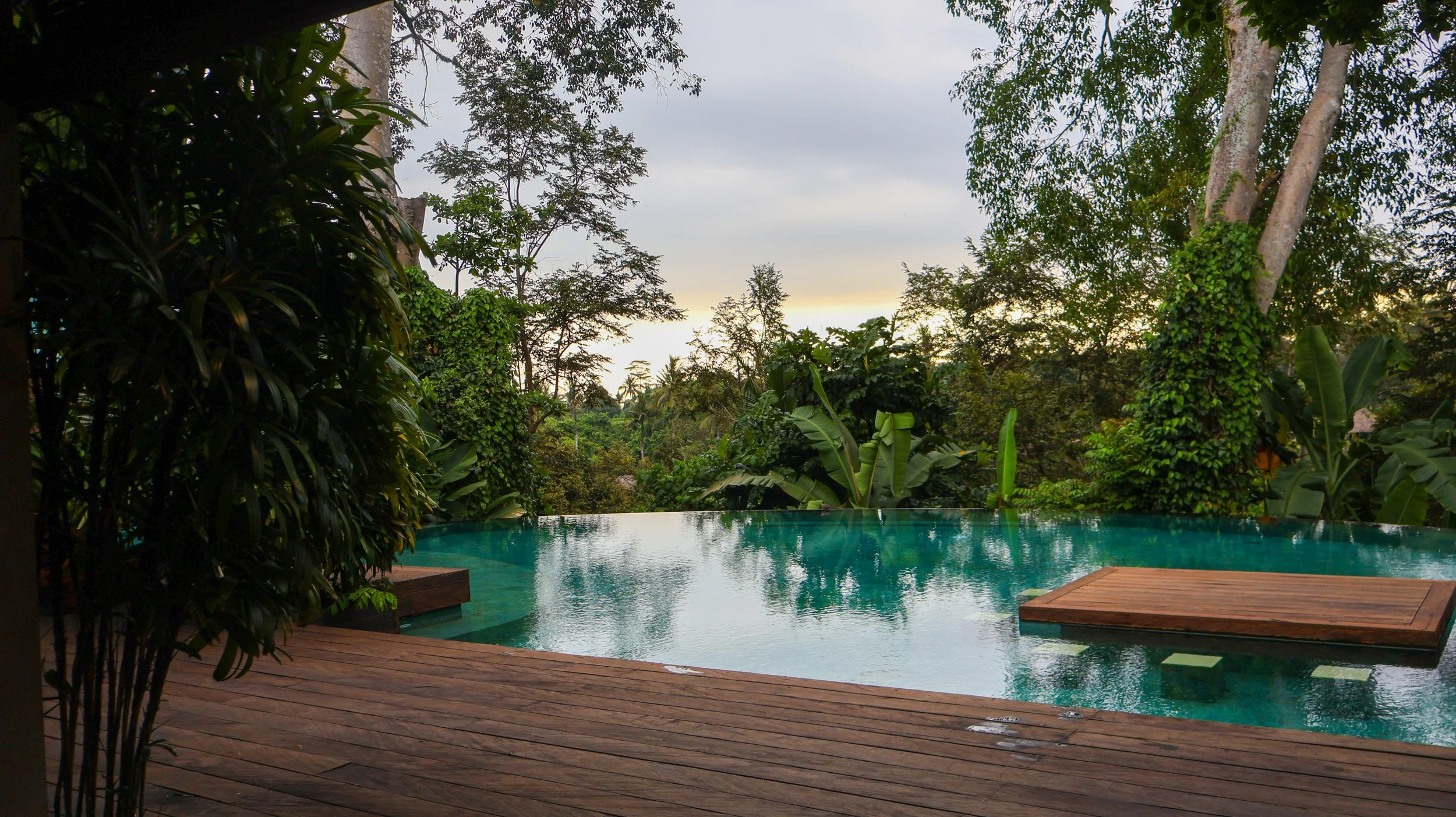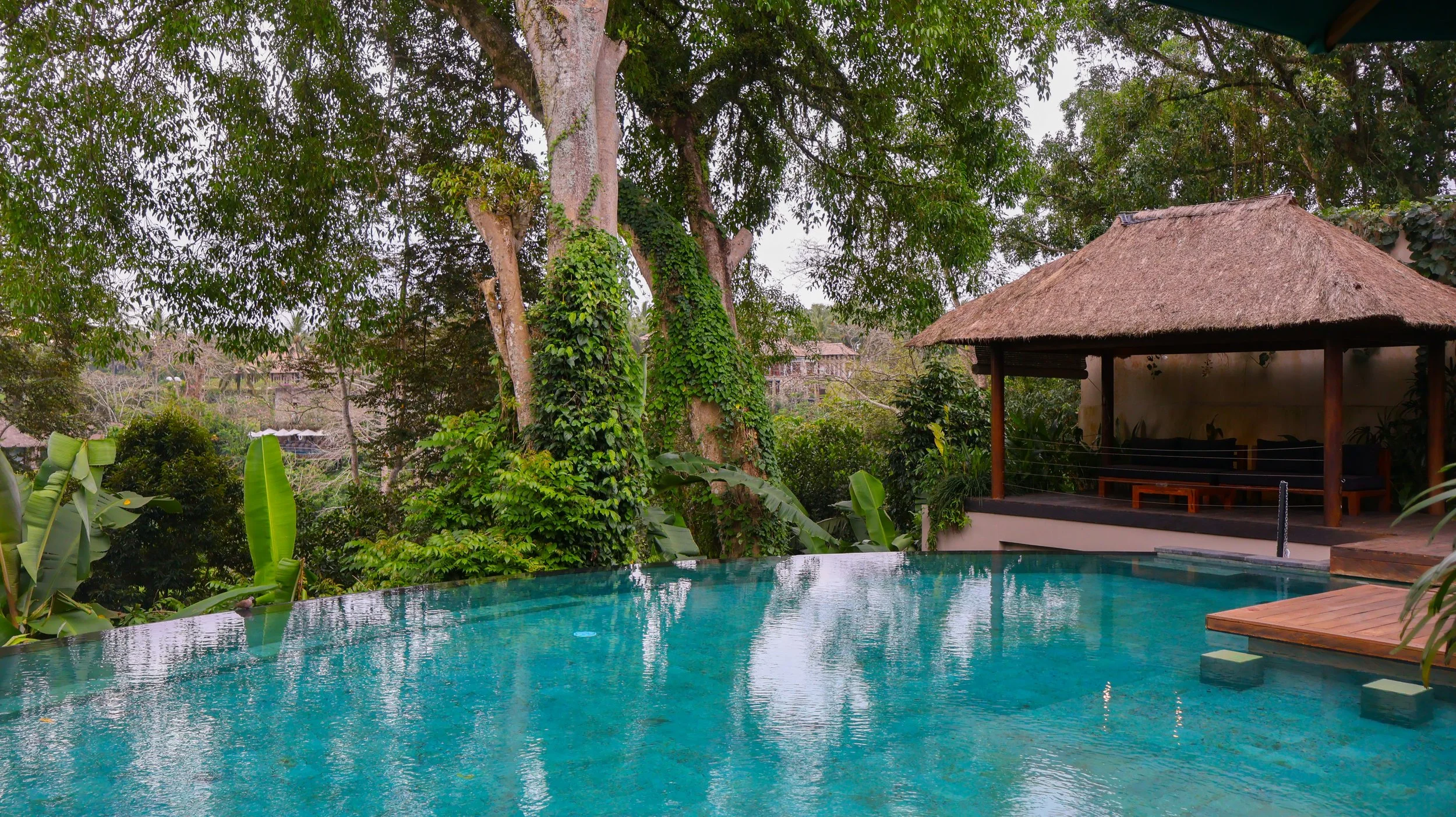 Design: Traditional Balinese architecture blended with modern comfort, open-plan living spaces, and panoramic jungle views
